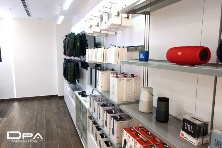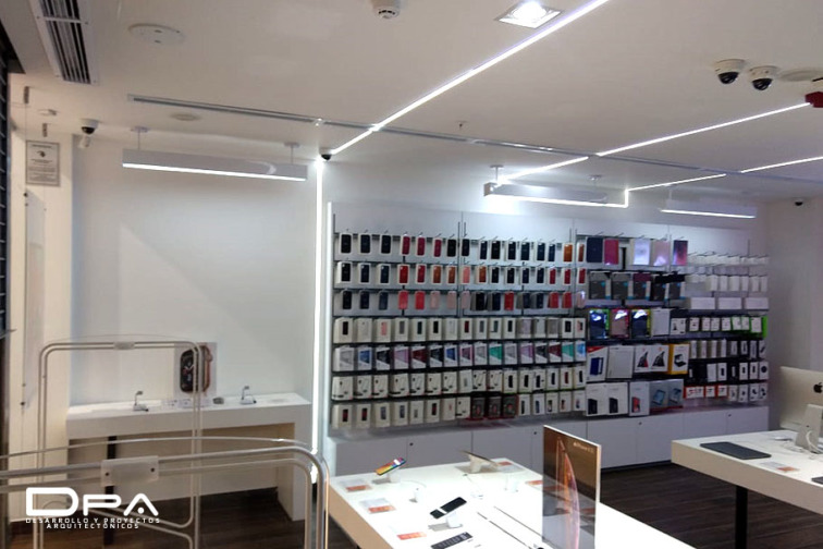 Diseño e implementación de local completo: fachada exterior, front office, back office, almacén. Instalaciones eléctricas, especiales y sanitarias. Diseño e instalación de Obra incluye propuesta de materiales, fabricación de muebles y acabados.