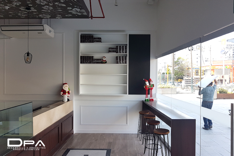 Propuesta de diseño e instalaciones completas. Implementación de local, fachada, interior, elaboración de mobiliario, acabados y publicidad.